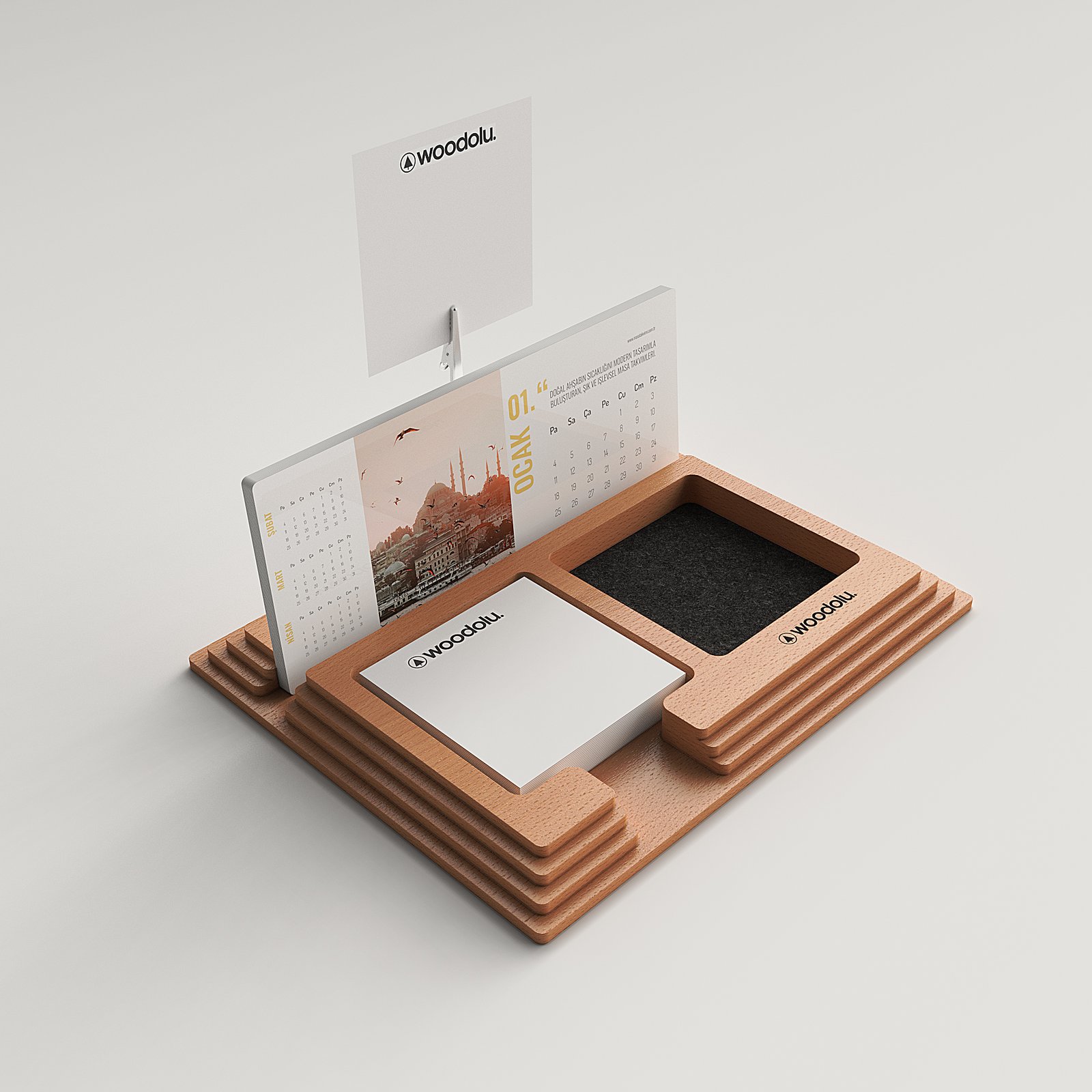 Ahşap Standlı Takvimler: Dekoratif görünümüyle dikkat çeker, özellikle ofis hediyesi olarak idealdir.